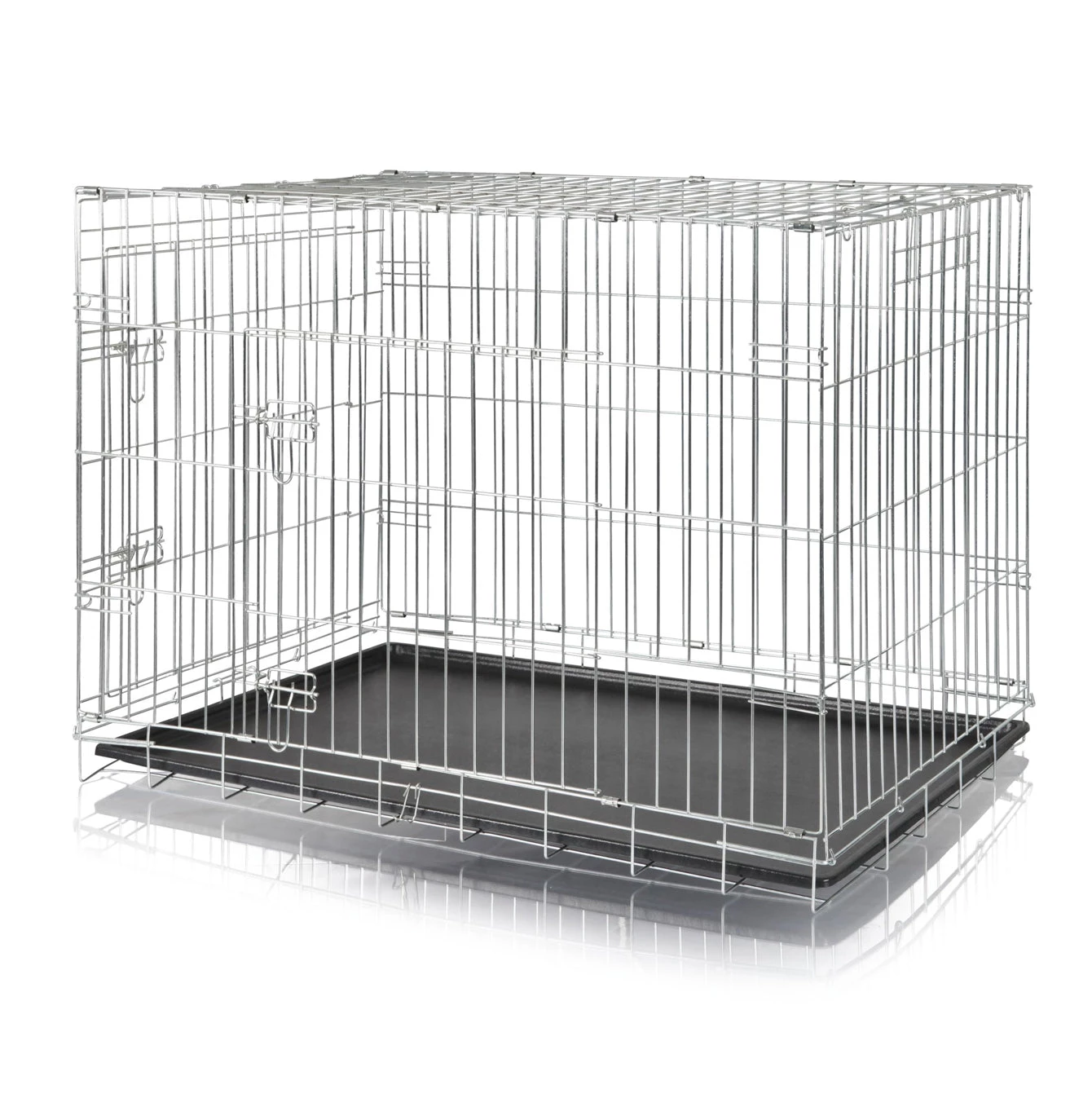 • Silver zinc coated metal crate with two doors for easy access