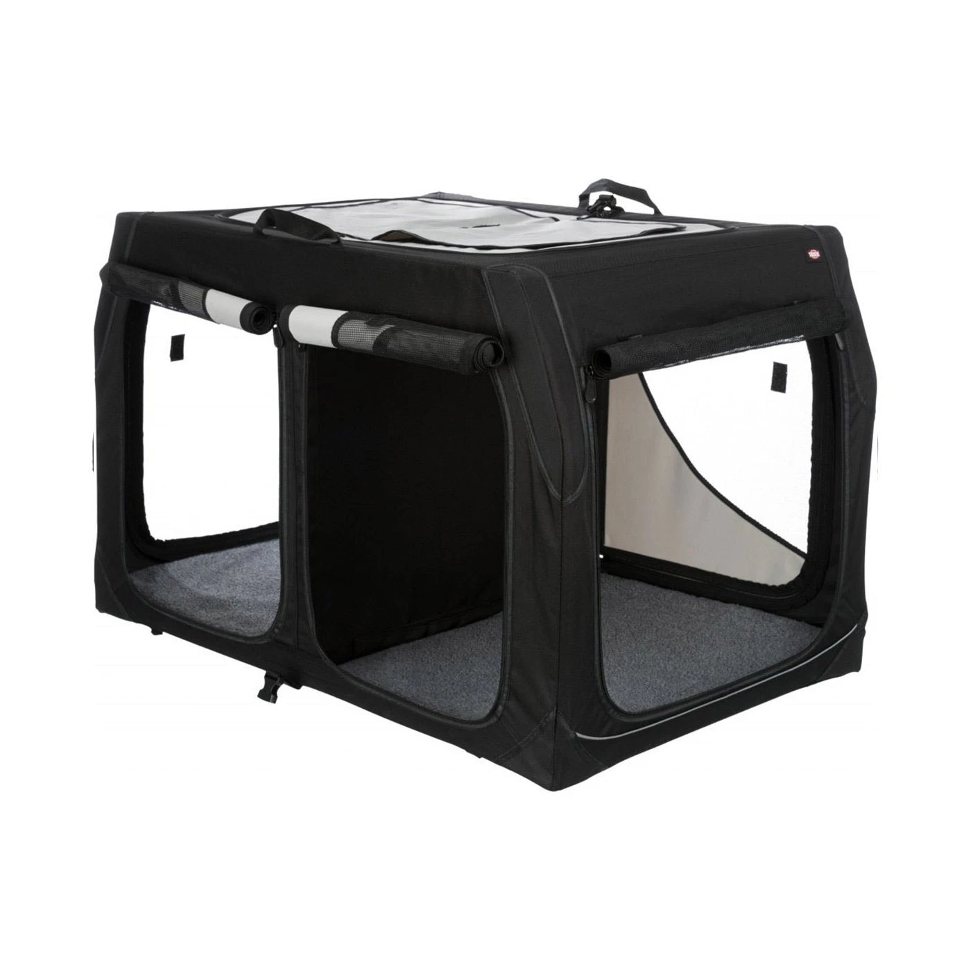 The Trixie double travel carrier has a stable metal framework and a fast-locking mechanism. Can be opened from all four sides for ease of access and has a removable closed divider. Includes bumper protection.
