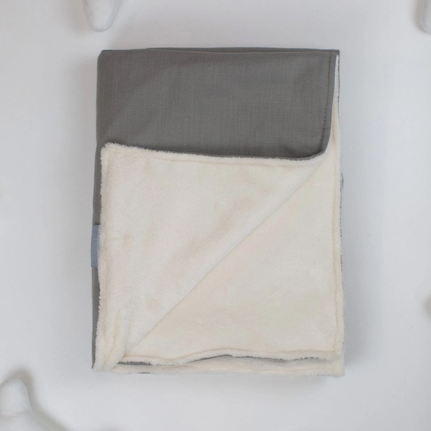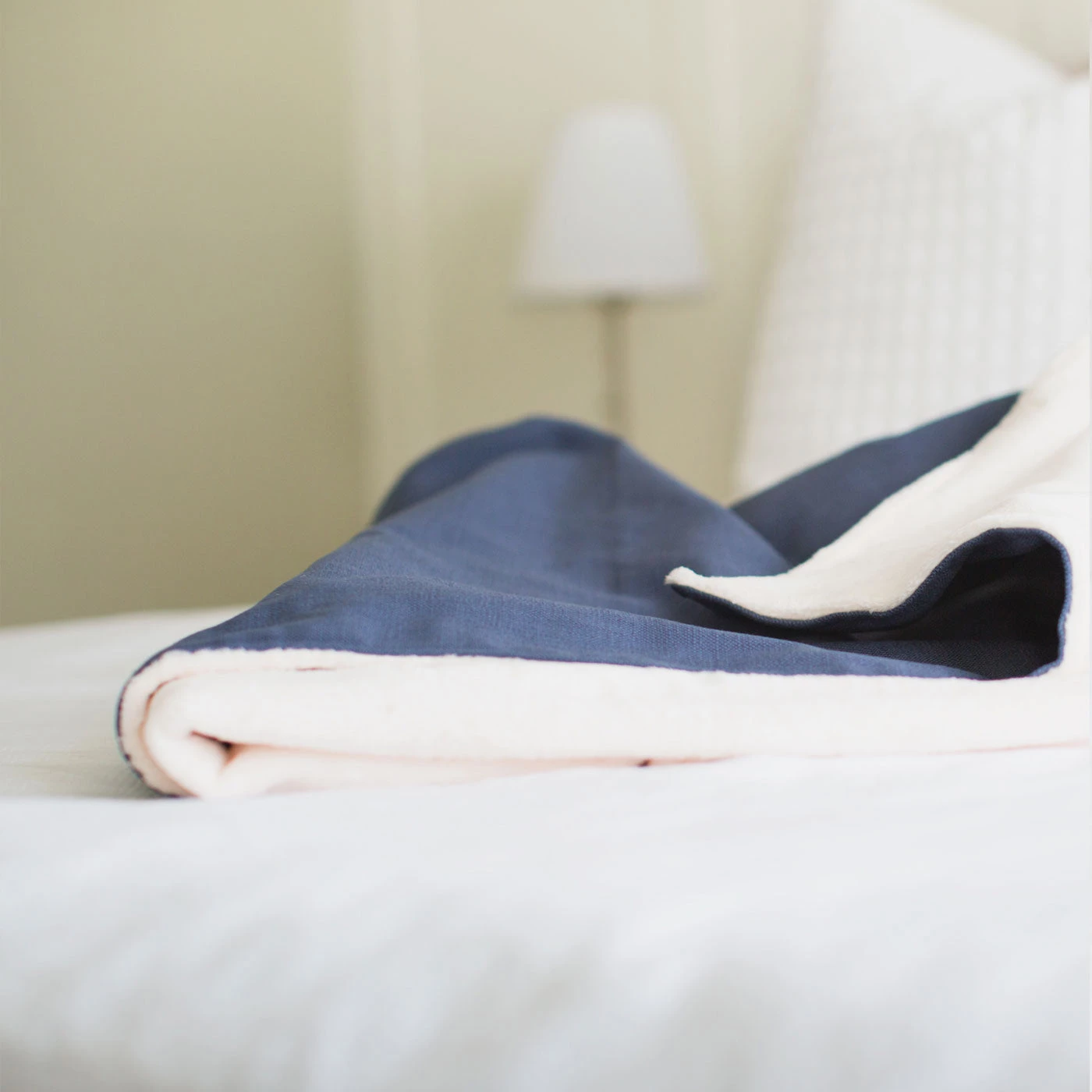 โขย Luna is pictured waiting for treats on our large Savanna Indigo blanket
