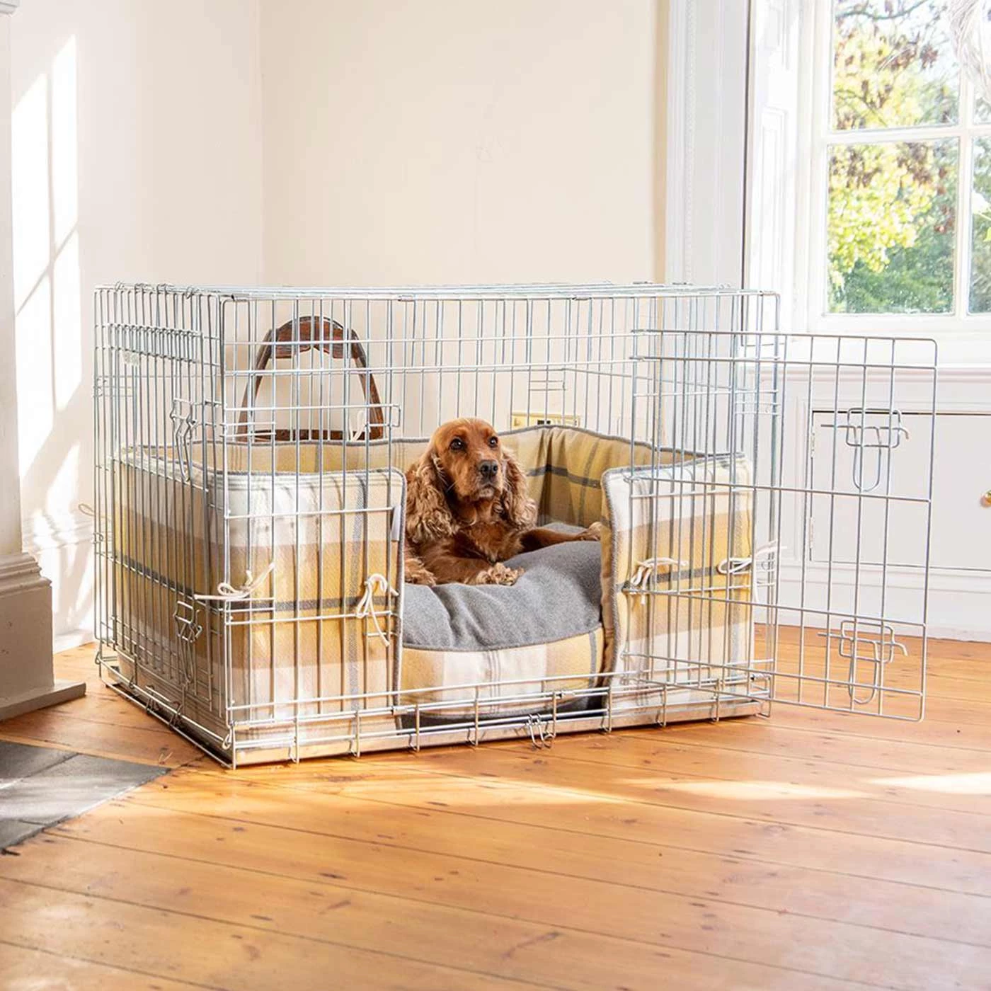 โข Tweed dog crate bumper