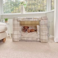 Promo 👍 Personalised 🐕 Dog Crate Cover in Balmoral Natural Tweed by Lords & Labradors ⌛